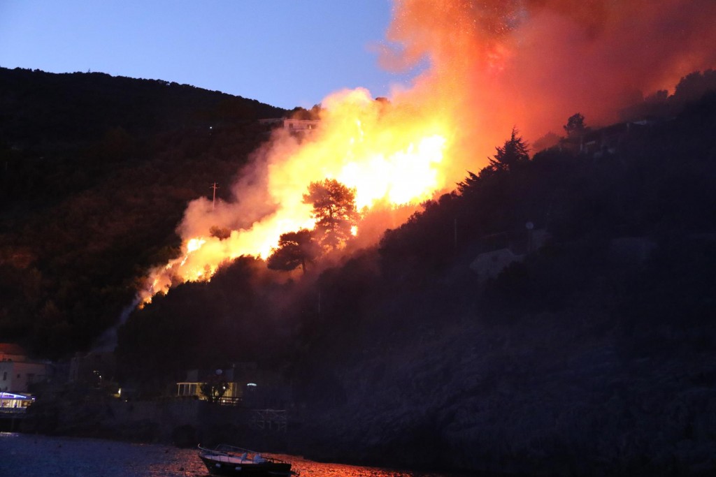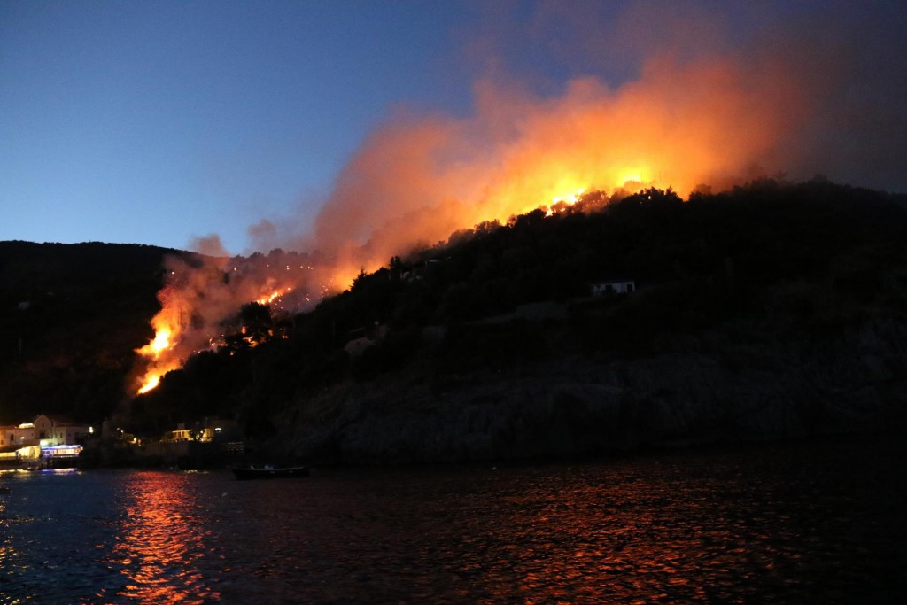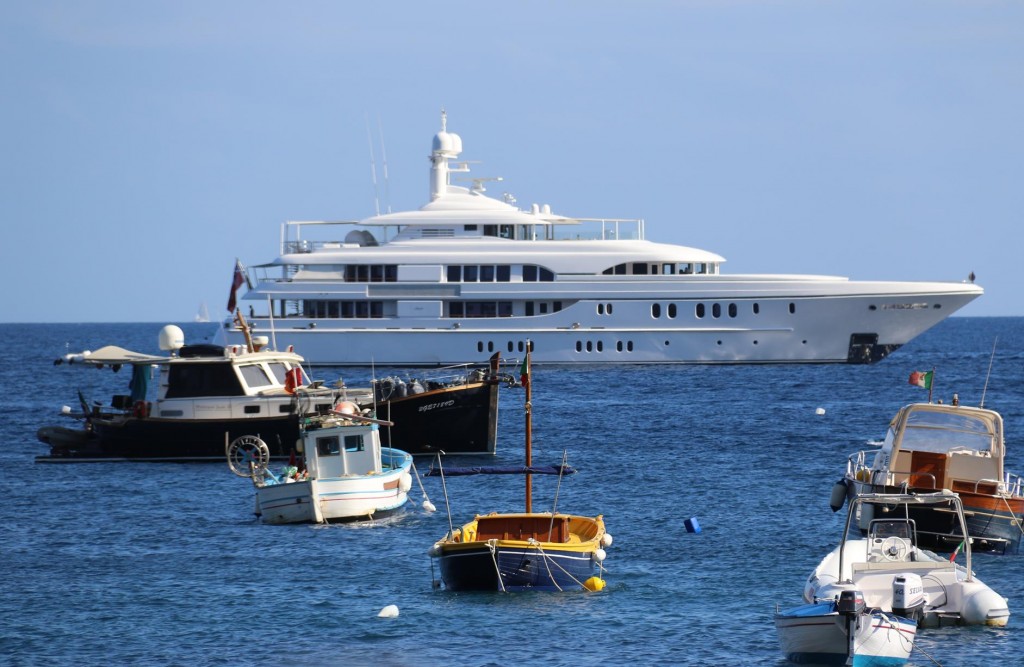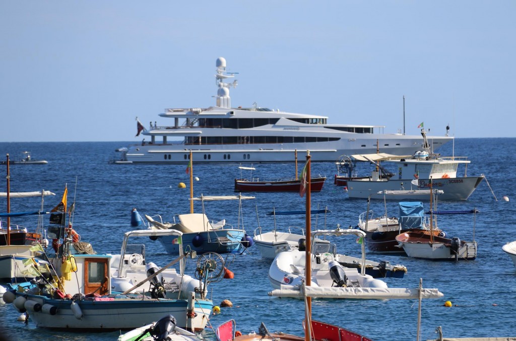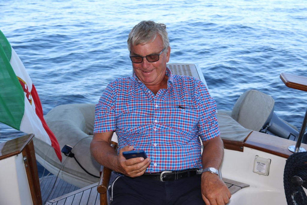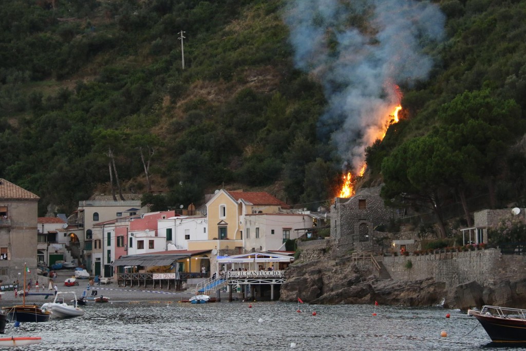 One of Maria Grazia’s signature dishes is the fabulous Spaghetti with Courgettes, which we all tasted by ordering a couple of platesA couple of seafood pasta dishes were ordered also which were deliciousAlthough we had a lot of small dishes to share we took our time so that we could try some of the amazing desserts that we had seen go by earlierA small ferry arrives at the pier with hardly standing room aboard for the passengersLovely Lime PuddingAmazing chocolate cakeFabulous Rum BabbaSensational Strawberry CakeWonderfully friendly and helpful mine host, Salvatore with his Father and Uncle relax before the dinner guests arriveLimoncello made in the house by Salvatore himselfLuciano takes us back to the Tangaroa around 7pmTime for us all to put our feet upAfter a long lunch it was certainly time to relaxRic relaxes by getting his phone out as usual!!Around 8.30 pm we notice flames behind the restaurant we had just been to for our long lunch20 minutes later the fire was halfway up the hill threatening a couple of houses10 minutes later the flames were at the top of the hill and many fire sirens could be heard – fortunately the fire missed the houses due to a wind change!