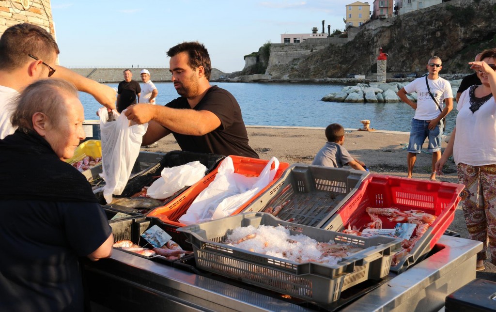 The fortified city walls of Bastia are quite conspicuous from the waterWe approach the harbour of Vieux Port in the old part of Bastia where we had already reserved a berth for the nightTangaroa in BastiaOnce the Tangaroa was securely tied up and washed down we take a walk around the portNot far away we find the local fishermen with their fresh catches for sale