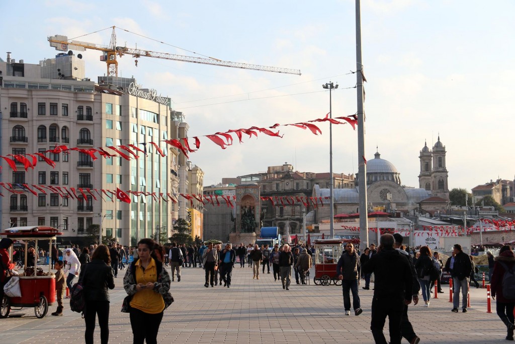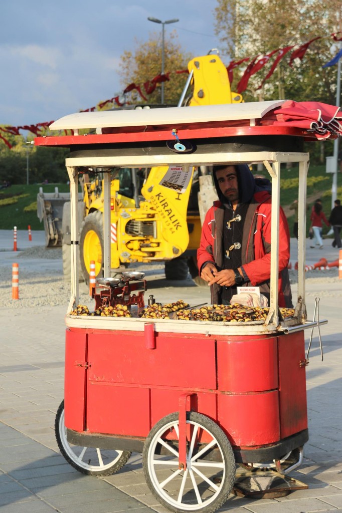 Back to Taksim SquareNo doubt a cat lover!We visit the Galata TowerOn our long walk today we pass many interesting little side streetsWe make our way towards the water in KarakoyLooking across the Goldern Horn to the Blue MosqueWe can also see Haggia Sofia in the distanceWe catch a tram over the Galata Bridge to the Grand Bazaar in BeyazitNearby is the Istanbul UniversityAfter spending the day revisiting a few sights we head back to TaksimThe food vendors are numerous in Taksim SquareBack to our hotel nearby