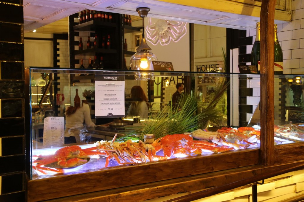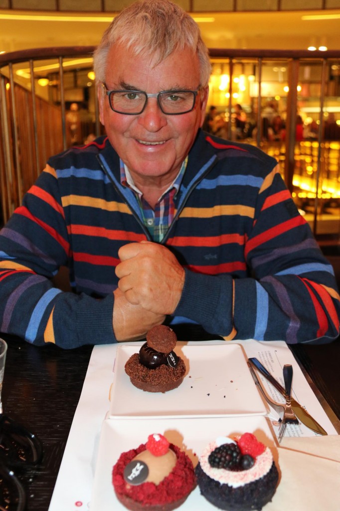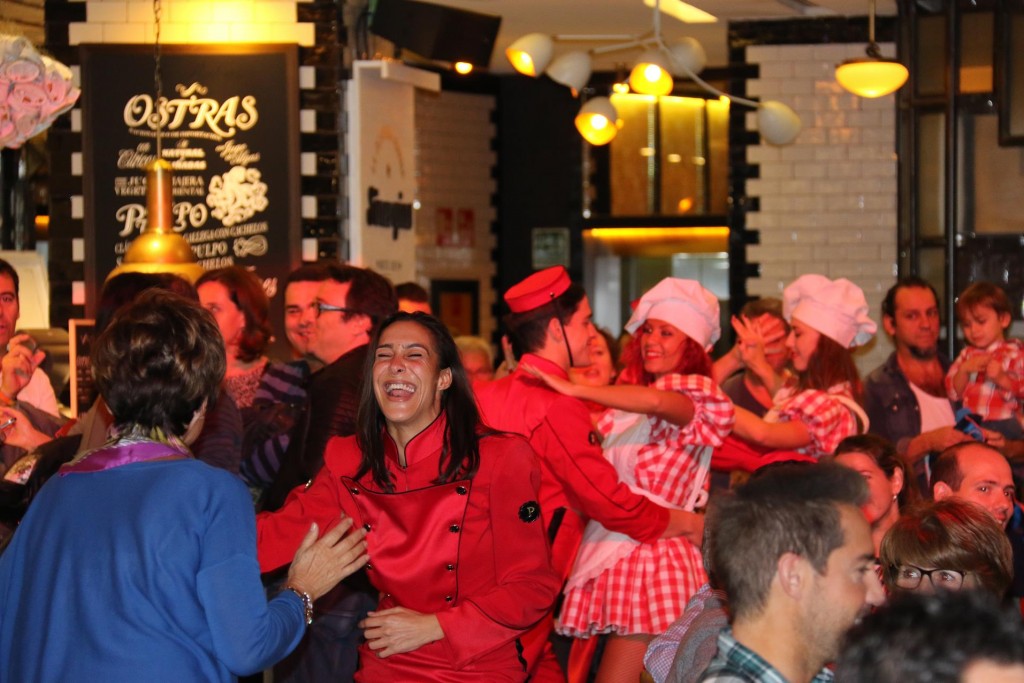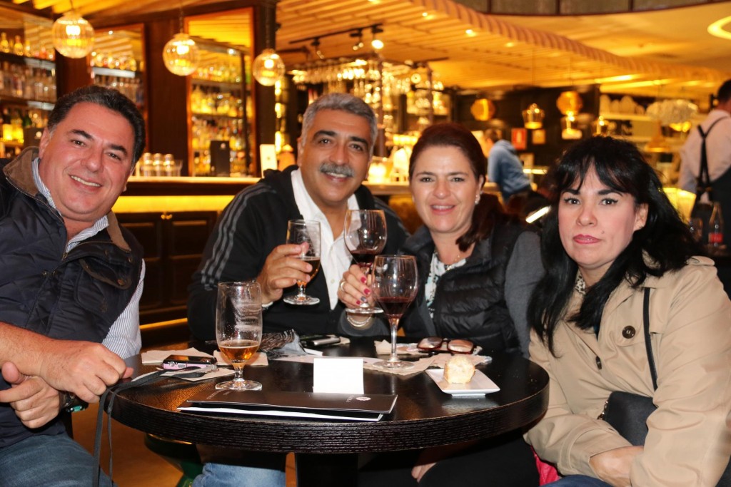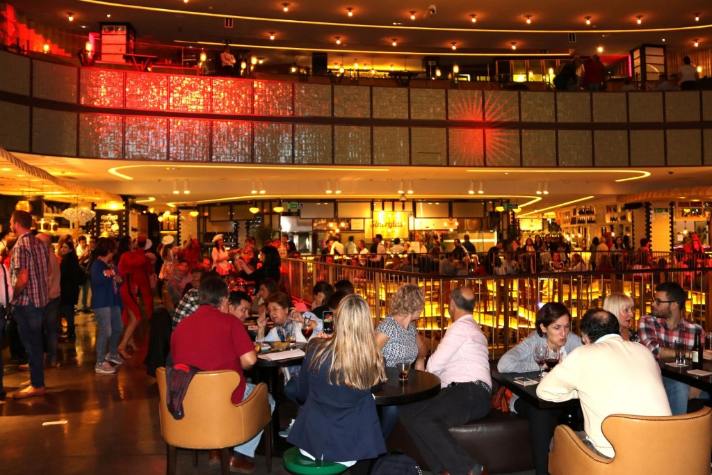 At lunchtime with the weather deteriorating we stumble upon PlateaThe vibrant and very busy eatery, which comprises of several floors, is situated in a central shopping complexTo entertain the customers, every hour a group of talented staff members circulate the room dancing Flamenco to loud Spanish musicWe finally secure a table and order some drinksThere are 2 floors of food outlets at Platea, all serving amazing TapasWe first decided to sample some Peruvian foodThese amazing Peruvian empanadas were so deliciousFrom another place we sampled grilled salmon with vegetables and a curry dish which were wonderful tooPlenty of seafood was also available at PlateaRic could not help himself as usual!! He ordered some delicious looking tartsA friendly group at the next table enjoying a few drinksAfter lunch we returned to the hop on hop off tourist bus to see a few more sights