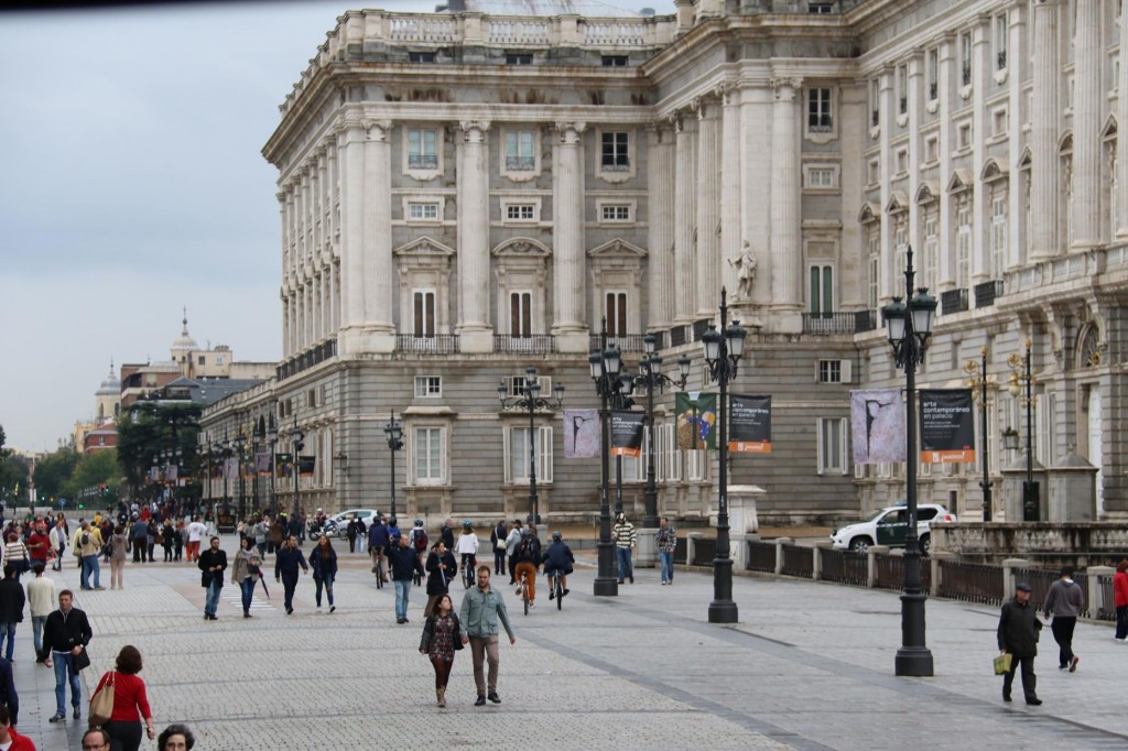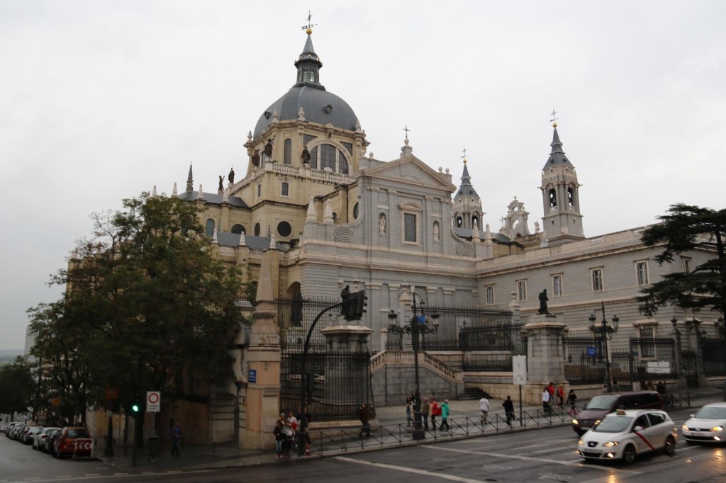 The Almudena Cathedral from the south east sideFinally the rain starts coming down heavily so we decide to get off the bus at the closest point to our hotel, buy an umbrella and return to our accommodation