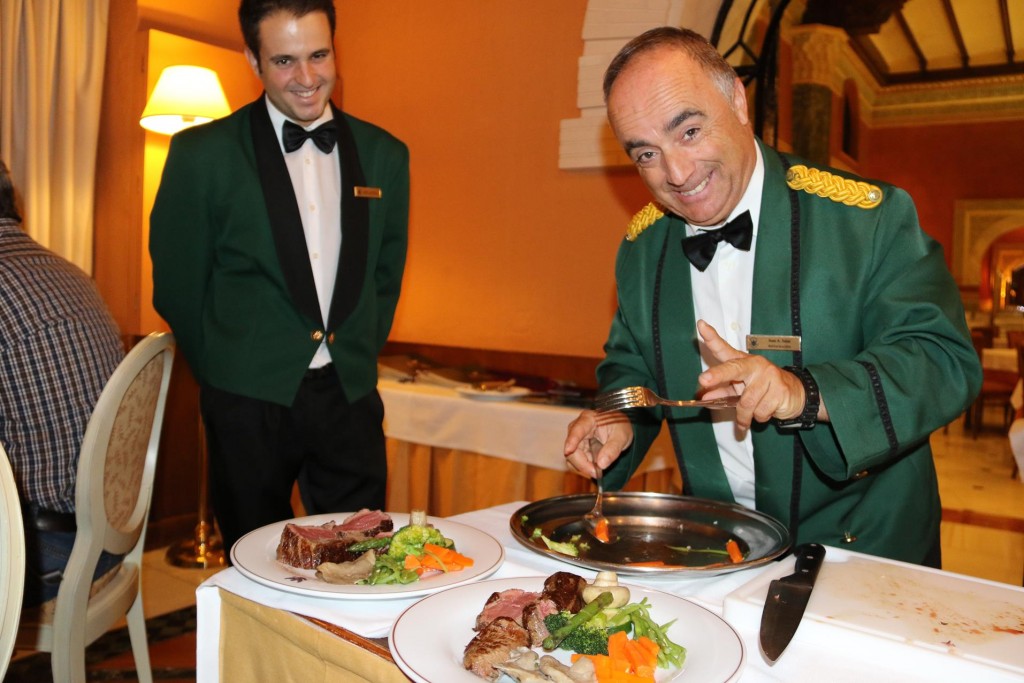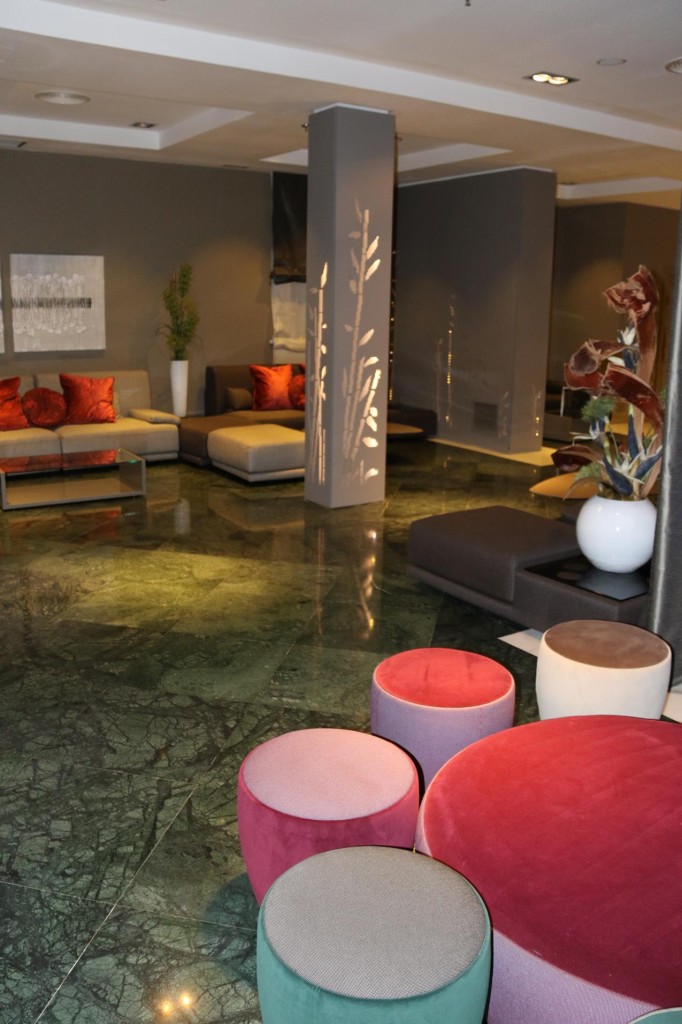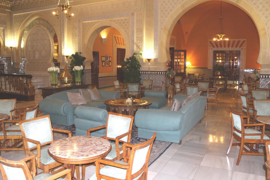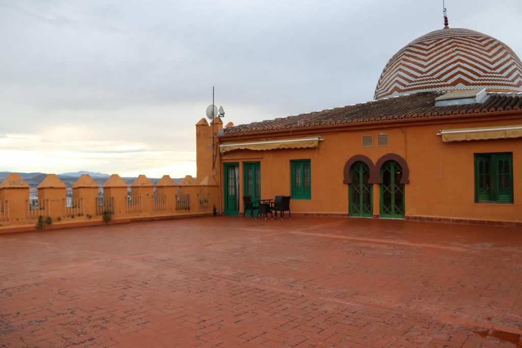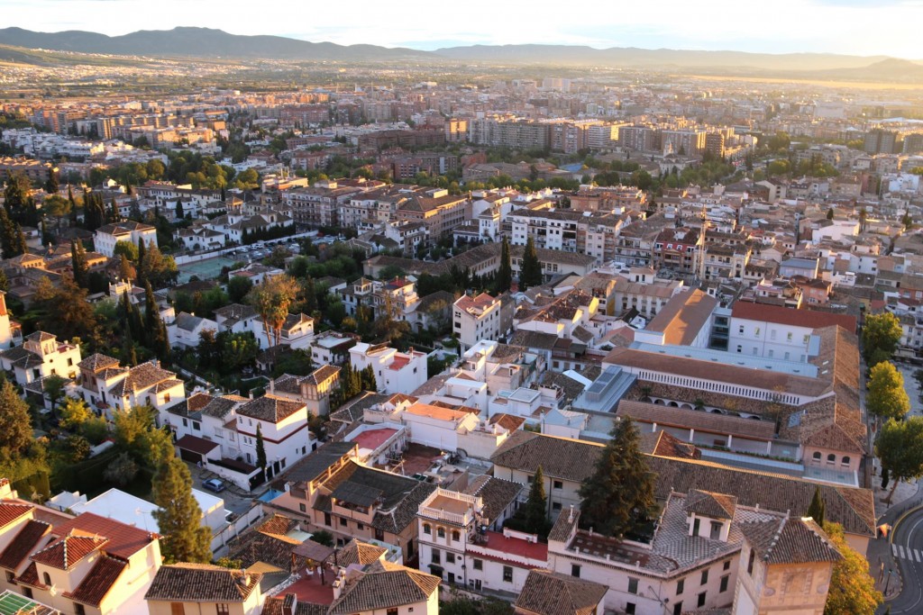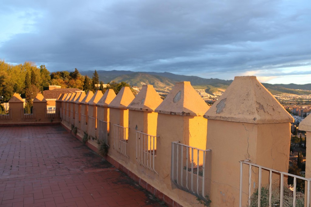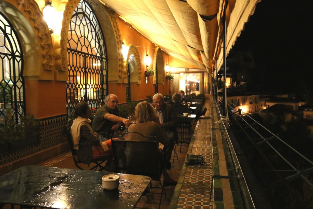 The attractive foyer of the modern Catalonia Hotel in Madrid where we spent 3 delightful nightsAs the weather in Madrid had deteriorated, we decided to check out of our hotel in Madrid at lunchtime, in time to get to the airport and fly to Granada. The weather forecast in Granada was to become sunny and warm in the next few days and we were looking forward to visiting the famous AlhambraAfter a one hour flight to Granada and then another half hour taxi trip from the airport, we arrive at the Alhambra Palace HotelThe very comfortable hotel guest lounge areaAfter checking into the hotel we went to the room that was allocated to us. It was very pleasant and comfortable accommodation for us for the next 4 nightsWe requested a balcony and what a balcony we received!!We couldn’t believe that this rooftop balcony was all for our own private use!!As the sun was setting over Granada the light over the town looked amazingWe also had outstanding views over Granada from our generous balcony!!As we had arrived fairly late at the hotel we decided to have dinner in one of the restaurants that overlooked the townThe food and service was excellent in the restaurant
