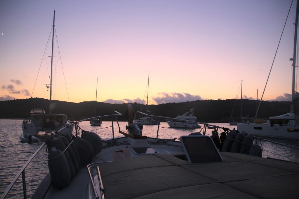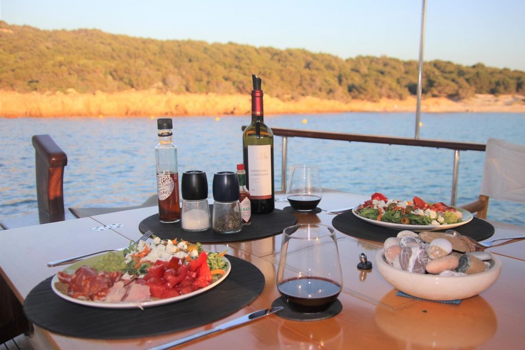 Another day of swimming and relaxingAgain in company with numerous other boatsBy early evening the day trippers had leftA salad with Italian deli meats on the menu tonightEvening swimmers