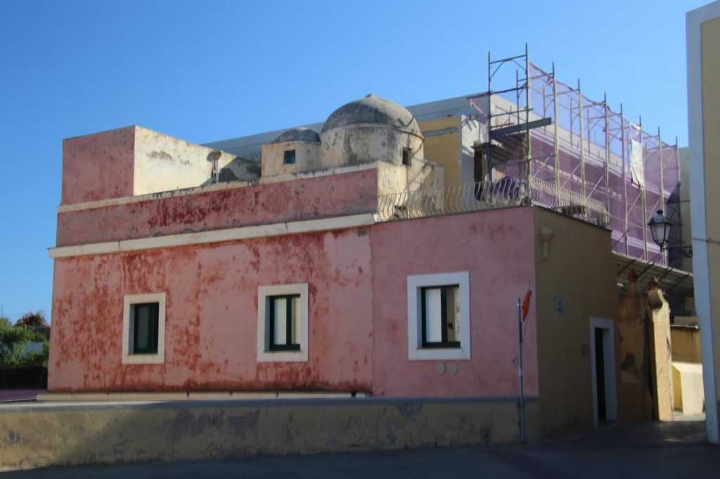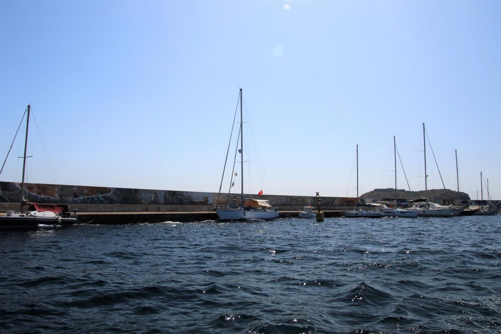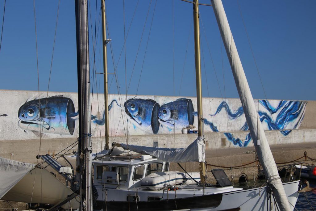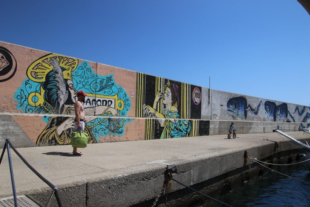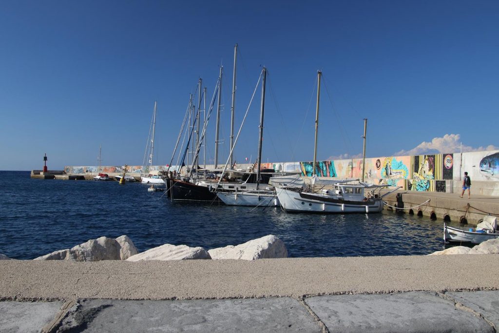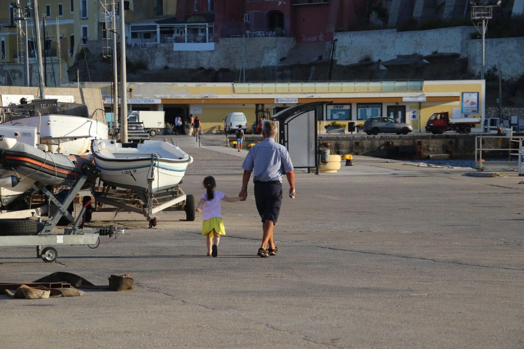 Not far from Ventotene Island is the small circular 400 m island of Santo Stefano which housed a prison for almost two centuries. The prison was built on 1797 and closed in 1965. Over the years it has housed many famous political prisonersContinuing on we try to book a table at La Terrazza di Mimi for this evening however they were booked out with a private functionThe scenery is spectacular overlooking the Cala Nave Beach and outlying isletsThere would be no free umbrellas today!!We check out another restaurant which again is booked out for dinner tonightThe Piazza Castello which houses the Ventotene Municipal BuildingWe circumnavigate the elevated town and arrive back overlooking the port where the Tangaroa is berthedWith the zoom lens we can easily see our family are back aboard and are enjoying the sun on the bow of the boatWe continue our walk around the lovely town coming to the churchBy the church is the zigzag ramp which leads you down to the port or visa versa takes you from the port to the upper townThe ancient man made portico of the old Roman port, has a series of arches behind which lie large storerooms. Today they are used as shops, bars and restaurantsReturning to the Tangaroa berthed in the larger main port with it’s wall of amazing graffiti The 5.30 pm ferry gets a friendly send off from several young onlookers
