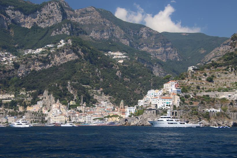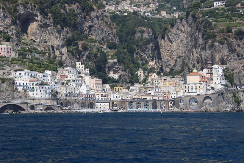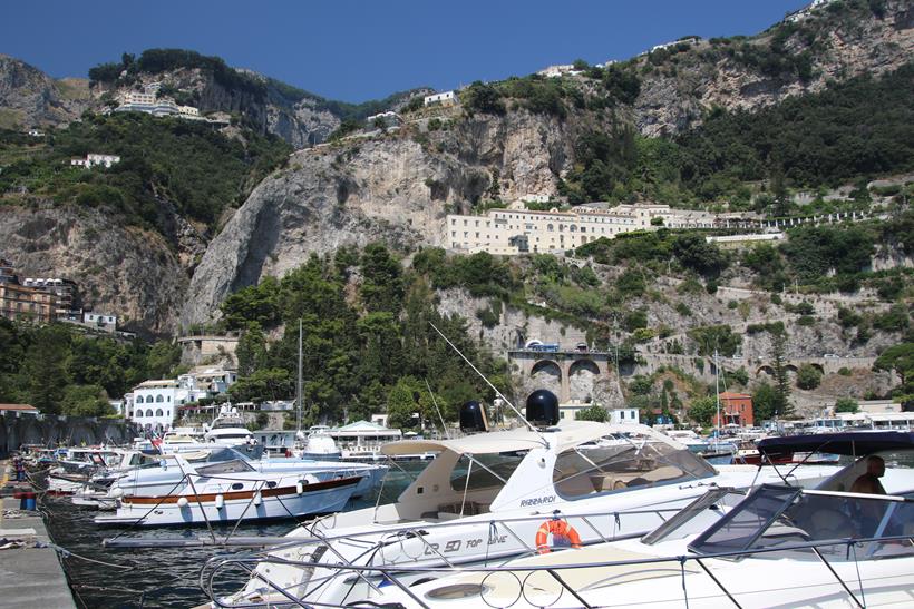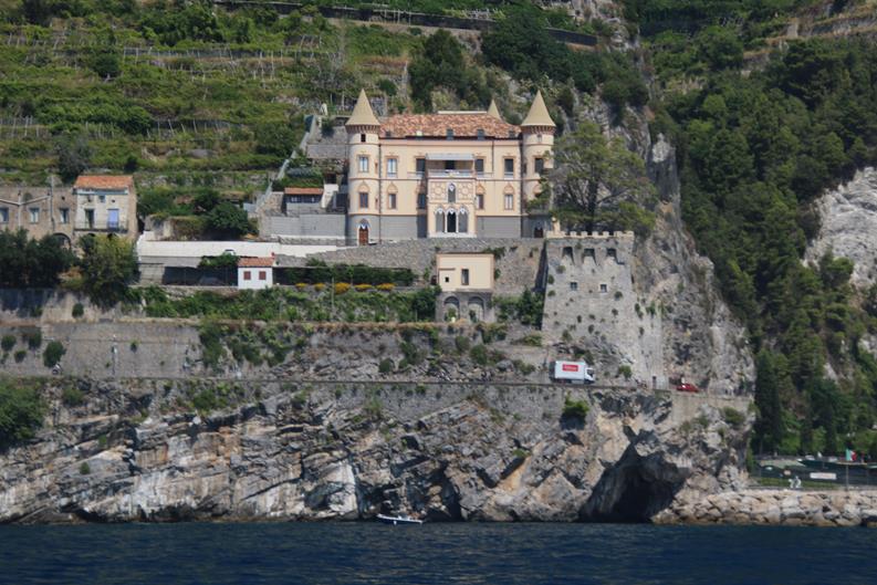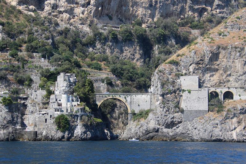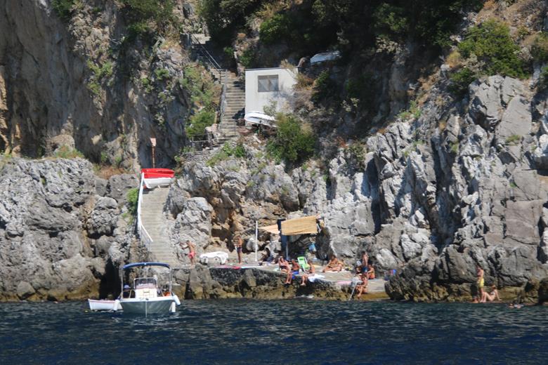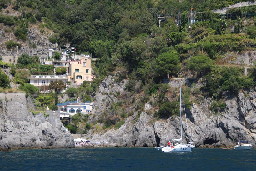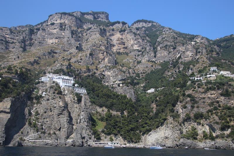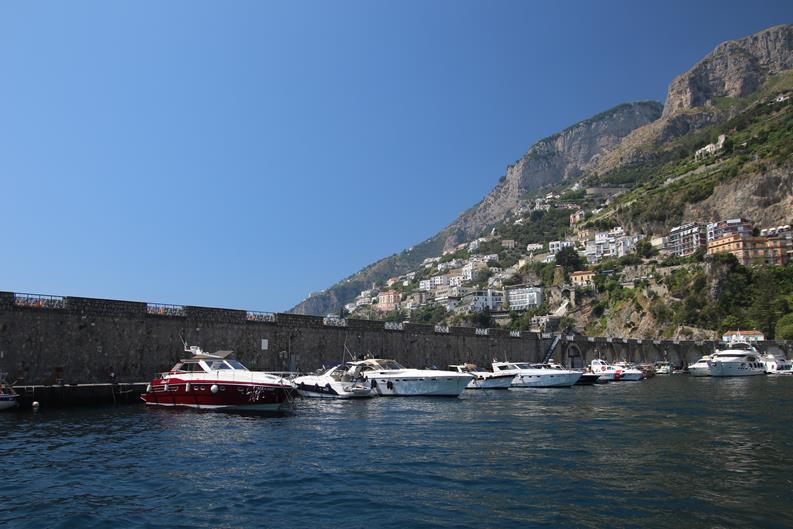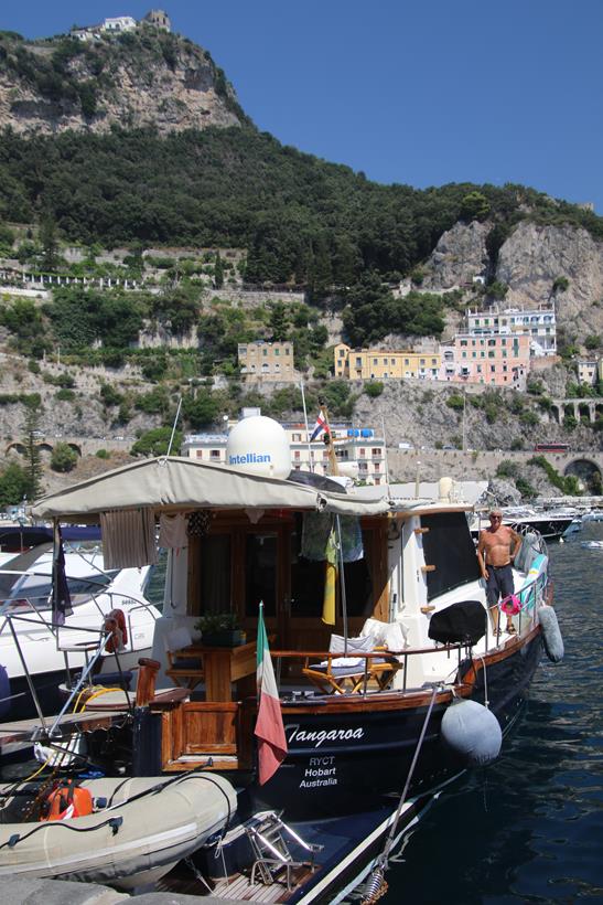 We have had a wonderful position overnight moored along the port wall in the town of AmalfiWe have made the decision to leave the port this morning as the weather today is very hot and perfect for anchoring out and doing a lot of swimmingOnce out of the Port of Amalfi we continue north east up the coastThe Amalfi Coast is a stunning area of ItalyAmazing houses, castles and hotels cling to the steep cliffs of the coastWe pass the ancient town of Maiori which has the longest unbroken stretch of beach on the Amalfi coastlineSpiaggia Cavallo Morto a popular sheltered bay has too many boats for our liking so we continue further along the coastThe scenery is certainly very spectacular along this rugged beautiful coastNot being able to find a suitable large enough bay to anchor, we turn around and decide to head back along the coast to where we had anchored briefly the previous dayWe continue back past the lovely town of Amalfi where we had a berth overnightPassing Il Duoglio Spiaggia a very popular beach with a unusual bar and several restaurants ashoreThe GAS barThe Grand Hotel Il Saraceno in Conca dei MariniFiordo di Furore is a popular tourist attraction along the coastMarina di Praia again looks quite crowded on the tiny beachLeft of the Minerva Tower overlooking the water is the Africana Famous Club which is a modern disco club built in an ancient settingContinuing south west we head towards the islet, Scoglio dell’IscaThe narrow coast road along the Amalfi Coast is well known to be one of the narrowest and busiest roads in ItalyHotel BellavistaWe return to the lovely anchorage below the Grand Hotel Tritone