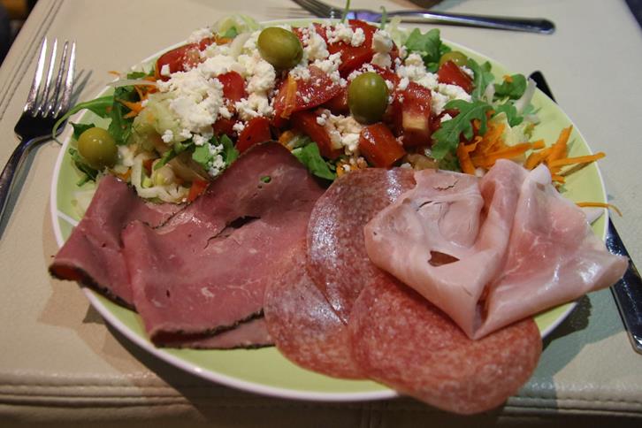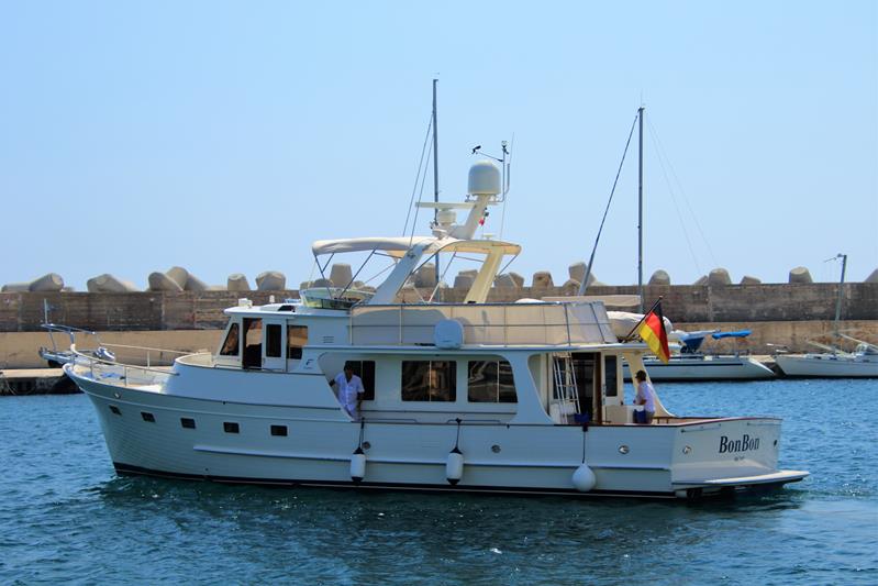Another pleasant day in Santa Maria Di LeucaOur neighbors on the starboard size of the Tangaroa leave port this morningOur mechanics have worked hard all day replacing the part which had finally arrived in the morningAnother night in the marina!!A hearty salad for dinner aboard …. perfect for this very hot weather
