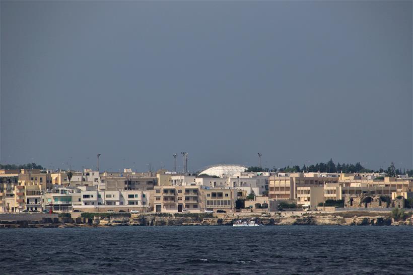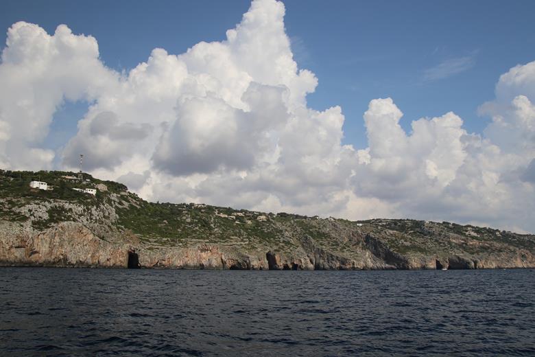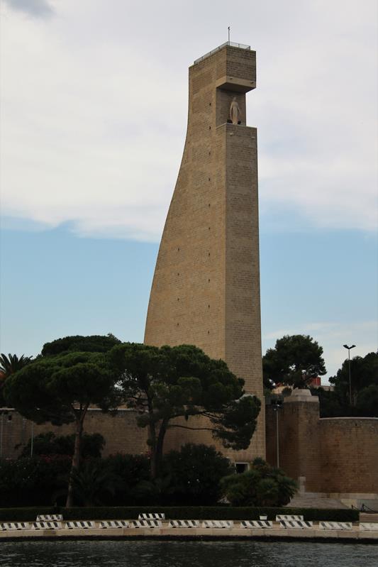 As we depart the marina we look back to the Monastery and the conspicuous lighthouse on the southern most point of the heel of Italy