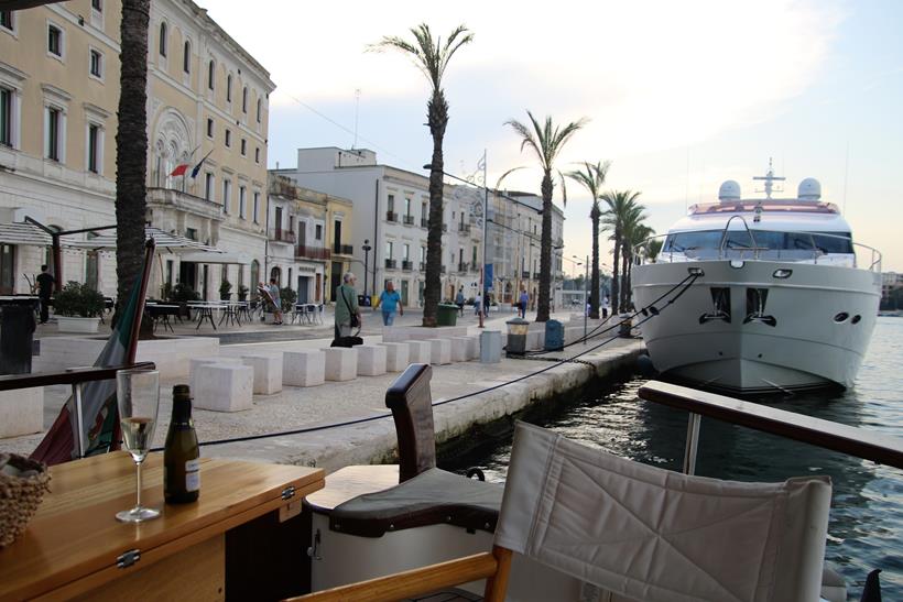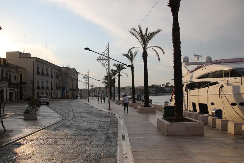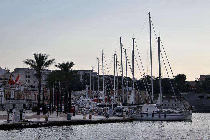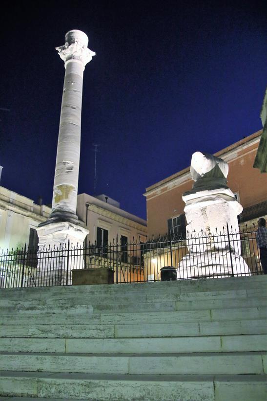 We have a wonderful position along the town quay at the bottom of the ancient steps that lead up to the ancient columns that represent the end to the Appian Way. The 62 km ancient Roman road was built in 312-264 BC and begins in Rome and finishes here in Brisini.