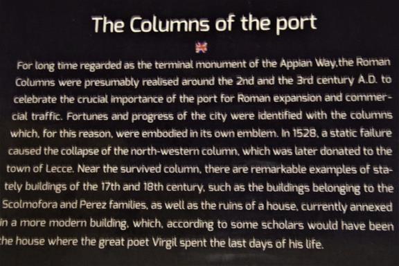 As we make our way into the port we see the ancient Colonne Romane, Roman Columns