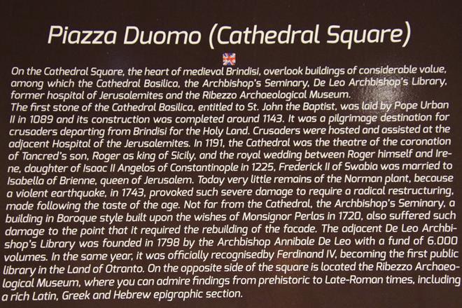 We continue our long journey to the safe port of Brindisi which we visited by hire car a few days ago