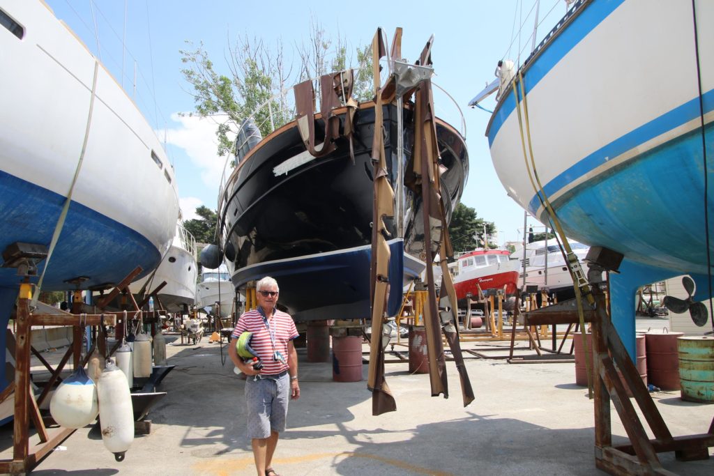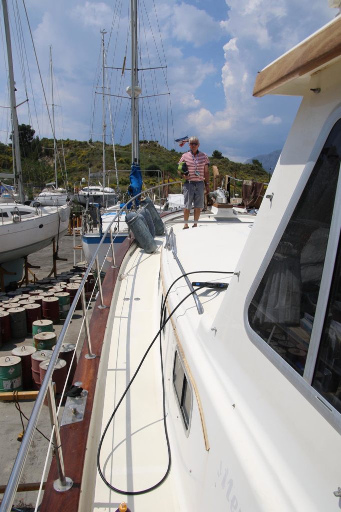 We have hired a vehicle and today plan to do some shopping for food and supplies while we are staying at Apartment Butterfly The Golf we hired from a company at the airport will be very useful while staying at our accommodationIt does not appear that the Tangaroa will be going into the water soon, as she is wedged behind several boats in the MCI shipyardBefore going shopping for food supplies for our accommodation, we make a quick visit to the Tangaroa. Ric has spent quite some time hosing down and removing almost 3 years of built-up dirt and residue from a deciduous tree, which she was unfortunately parked beneathRic has done a fabulous job cleaning the decks
